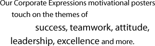 So why not harness this power with these smart, inspirational messages expressed via dramatic, colourful images. Usher in success for your team, department or entire organization with motivational tools that inspire and unite everyone around your corporate goals. Our themed products offer not only companies like yours but also individuals working in a variety of fields, the opportunity to communicate important goals and reinforce them in the workplace every day. Families are teams too, so don’t overlook the potential of our unique ideas to satisfy your personal objectives and gift-giving occasions.